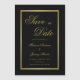 Announce your wedding in style with this elegant custom save the date magnetic card featuring faux gold script with your wedding date and other details to personalise bordered in a shiny faux gold frame on a simple black background. Designed by Susan Coffey.