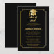 Elegant Black | Gold Cap College Graduation Party Invitation