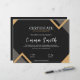 An elegant certificate of achievement featuring a modern black background with luxurious gold geometric accents. Perfect for employee recognition, academic awards, corporate appreciation, school achievements, or professional milestones. This stylish and timeless certificate design is ideal for offices, schools, businesses, and formal award ceremonies.