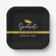 Elevate your graduation party with these modern black and gold personalised paper plates featuring a sleek "Graduate" script, a graduation cap graphic, and customisable text for the graduate’s name and class year. Perfect for high school and college graduation celebrations, these elegant disposable plates add a stylish touch to your party decor while making cleanup effortless.