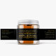 Take your product packaging design to the next level with this elegant cosmetic jar label design (W 8.25" x H 1.75"), featuring a faux gold flourish ornament a black background. You can edit your business name, product name, product flavour, ingredients, social handle, website, directions, and instructions.