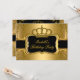 Elegant Black Gold Crown Floral Birthday Party 3 Invitation