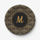 Elegant Black Gold Deco Art Pattern Monogram Paper Plate