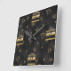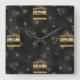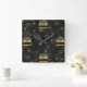 Elegant Black & Gold Diamond Design Square Wall Clock