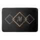 Elegant Black Gold Diamond Geometric Monogram Bath Mat