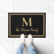 Elegant stylish modern custom monogram doormat in classic black and Gold Double Borders . You can personalise this simple modern black and Gold double borders with your family's last name in script and a serif style monogram initial.