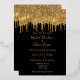 elegant black gold dripping glitters chic wedding Foil Invitation