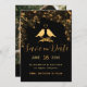 Announce your wedding with this elegant black and gold save-the-date cards which boasts a luxurious black and gold palette, with a stunning golden floral pattern and modern typography set against a black background, exuding elegance and sophistication. Insert your photo and your wedding website on the back side.