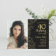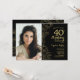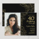 Elegant Black Gold Floral Photo 40th Birthday Invitation