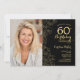 Elegant Black Gold Floral Photo 60th Birthday Invitation