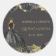 Elegant Black Gold Floral Princess Quinceanera Classic Round Sticker
