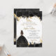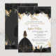 Elegant Black Gold Floral Princess Quinceañera Inv Invitation