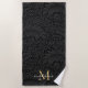 Elegant Black Gold Floral Script Monogram Beach Towel