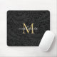 Elegant Black Gold Floral Script Monogram Mouse Pad