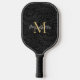 Elegant Black Gold Floral Script Monogram Pickleball Paddle