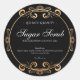 Elegant Black Gold Foil Glamourous Product Label. An elegant design for featuring vintage swirls in shiny gold faux foil. Great for branding your glamourous and luxurious products! Suitable for a large variety of products candles, bath and beauty or baked goods. Need help with customising this template? Contact the designer/creator by clicking on the 'message' button below.
