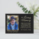 Elegant personalized sympathy & memorial IN LOVING MEMORY thank you note cards after funeral. Easy to add photo / picture of your loved one online. Faux gold frame with on a black background. Give them during or send them after the funeral. Acknowledgement of condolences. Makes great keepsake, memory of a loved one. Add your thank you message / wording / sayings. Unisex, male (man), female (woman). See others like 'in loving memory'