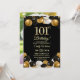 An elegant modern design featuring gold 101 number, balloons with gold and black glitter and a special photo of the birthday person on the back of the invitation. Customize the details for a unique and chic Birthday Celebration.