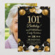 Elegant Black Gold Glitter 101st Birthday Photo Invitation
