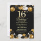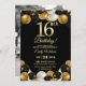 Elegant Black Gold Glitter 16th Birthday Photo Invitation