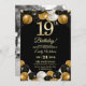 Elegant Black Gold Glitter 19th Birthday Photo Invitation
