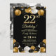 Elegant Black Gold Glitter 22nd Birthday Photo Invitation