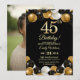 Elegant Black Gold Glitter 45th Birthday Photo Invitation