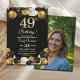 Elegant Black Gold Glitter 49th Birthday Photo Invitation