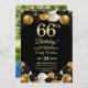 Elegant Black Gold Glitter 66th Birthday Photo Invitation