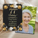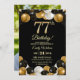 An elegant modern design featuring gold 77 number, balloons with gold and black glitter and a special photo of the birthday person on the back of the invitation. Customize the details for a unique and chic Birthday Celebration.