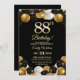 Elegant Black Gold Glitter 88th Birthday Invitation