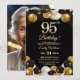 Elegant Black Gold Glitter 95th Birthday Photo Invitation