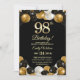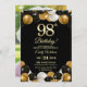 Elegant Black Gold Glitter 98th Birthday Photo Invitation