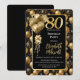 Elegant Black Gold Glitter Balloons 80th Birthday Invitation