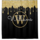 Elegant Black Gold Glitter Drips Monogram Script Shower Curtain