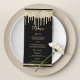 This luxury modern minimalist black and gold glitter drips border Wedding Menu Invitation is inspired by the simple and elegant was but with subtle hints of modern influence. It features a glam gold glitter drips border on a simple black background. This classic and luxury design will be a big hit with all your guests. All designs are printed.