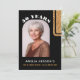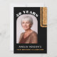 Elegant Black Gold Glitter Photo Surprise 50th Birthday Invitation. Modern design with faux gold glitter on a black background with custom name and a photo in an arch frame on the front. Customise the invitation on the front and on the backside.
