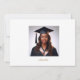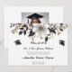 Elegant graduation announcement featuring a sophisticated black, white, and gold floral design. The announcement includes stylish script and serif fonts, a small graduation cap illustration, and customisable details such as the graduate's name, school, date, time, and location of the event. Perfect for celebrating a special academic achievement with family and friends.