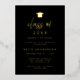Celebrate your graduate with this elegant black and gold graduation party invitation featuring a graduation cap icon and modern script typography. This luxurious, minimalist design is perfect for high school or college graduates and can be personalized with the graduate’s name, class year, school, and event details.