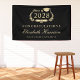 Elegant black and gold graduation party welcome banner featuring "Class of" in an illustration of laurel wreath incorporating a grad cap and diploma, the graduate's name in a formal script, and "Congratulations" and their school name in classic modern typography.