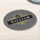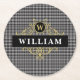 Elegant Black Gold Grey Glen Plaid Monogram Round Paper Coaster