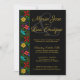 Elegant Black Gold Latin Folk Floral Wedding Invitation