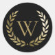 Elegant Black Gold Laurel Wreath Monogram Classic Round Sticker