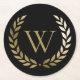 Elegant Black Gold Laurel Wreath Monogram Round Paper Coaster