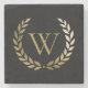 Elegant Black Gold Laurel Wreath Monogram Stone Coaster