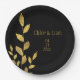Elegant Black Gold Leaf Modern Chic Wedding Paper Plate