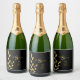Elegant Black Gold Leaf Modern Monogram Wedding Sparkling Wine Label