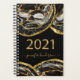 Modern, stylish, elegant 2021 appointment book. Design features marble geodes pattern in gold, black, grey colours and year 2021 in gold. Personalise with a name in trendy calligraphy handwritten lettering. Perfect as a gift for new year.