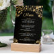 Add a touch of elegance to your special day with our Elegant Black and Gold Menu. Featuring golden confetti on a rich black background, it's the perfect choice to set the tone for your celebration. Customise the details and make your event shine. Order yours today!