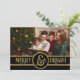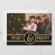 Elegant Black Gold Merry & Bright Photo Christmas Holiday Card